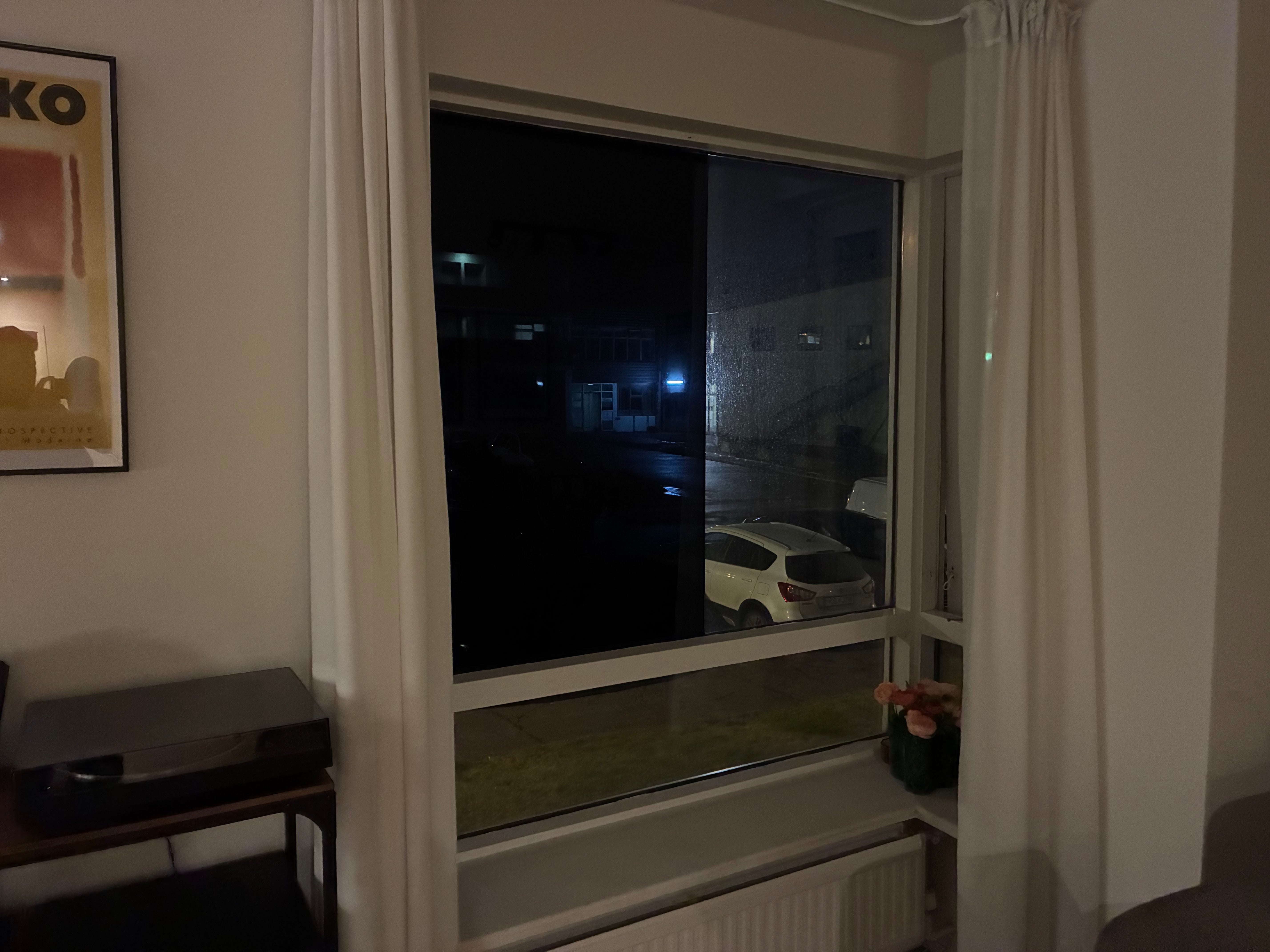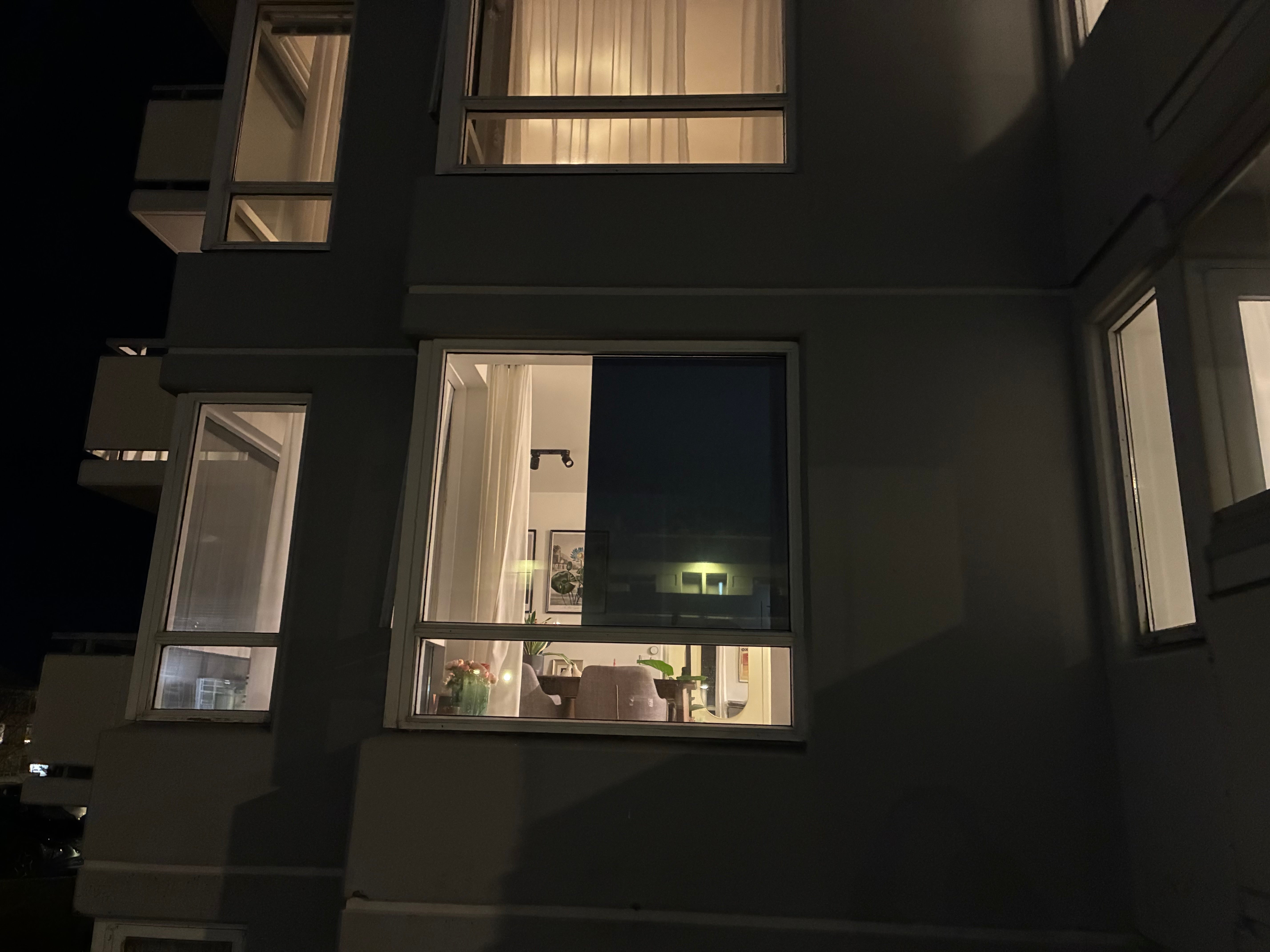 Á kvöldin þá sést lítið sem ekkert í gegn heldur sem er ólýkt hefðbundnum spegil sólarfilmum sem virka bara þannig þegar það er bjart úti.