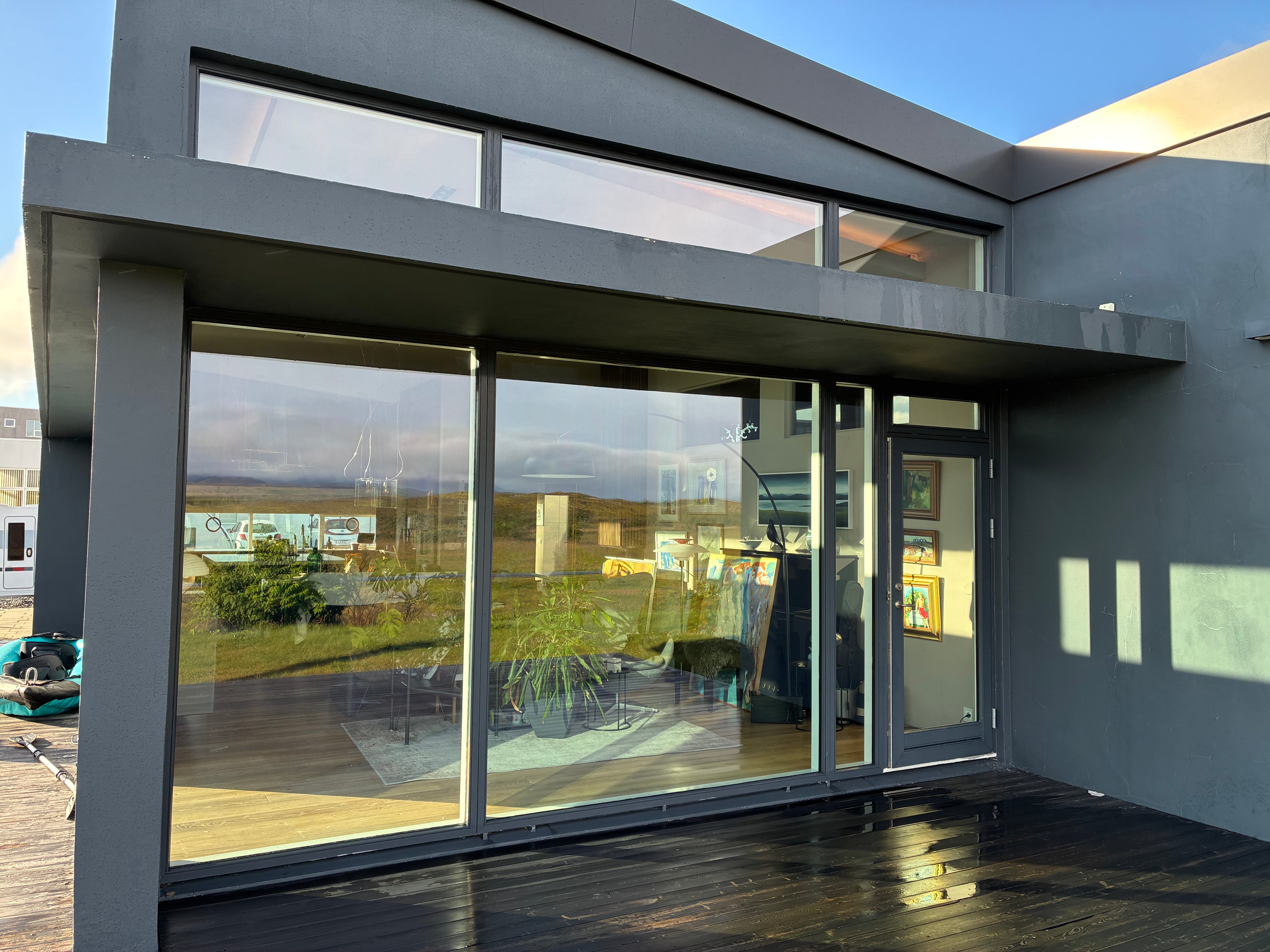 Heldur úti hitanum, sniðugt til þess að sólstofur og önnur rými með stórum gluggum ofhitni ekki. Einnig verndar filman áklæði og innréttingar gegn upplitun. Það er ekki speigláferð á þessum fimum og eru nánast glærar með smá bláan tón.